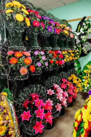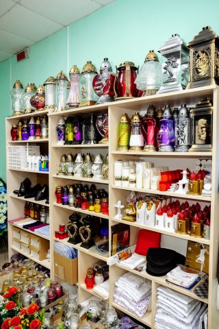 Помимо оказываемого сервиса, мы можем предложить Вам различные ритуальные товары: венки, гробы, кресты и другую атрибутику. Весь ассортимент товаров можно посмотреть, посетив наши Ритуальный магазин «Ритуал Сервис» по адресу г. Сморгонь, ул. Гагарина, 3 (здание аптеки «Планета здоровья»).